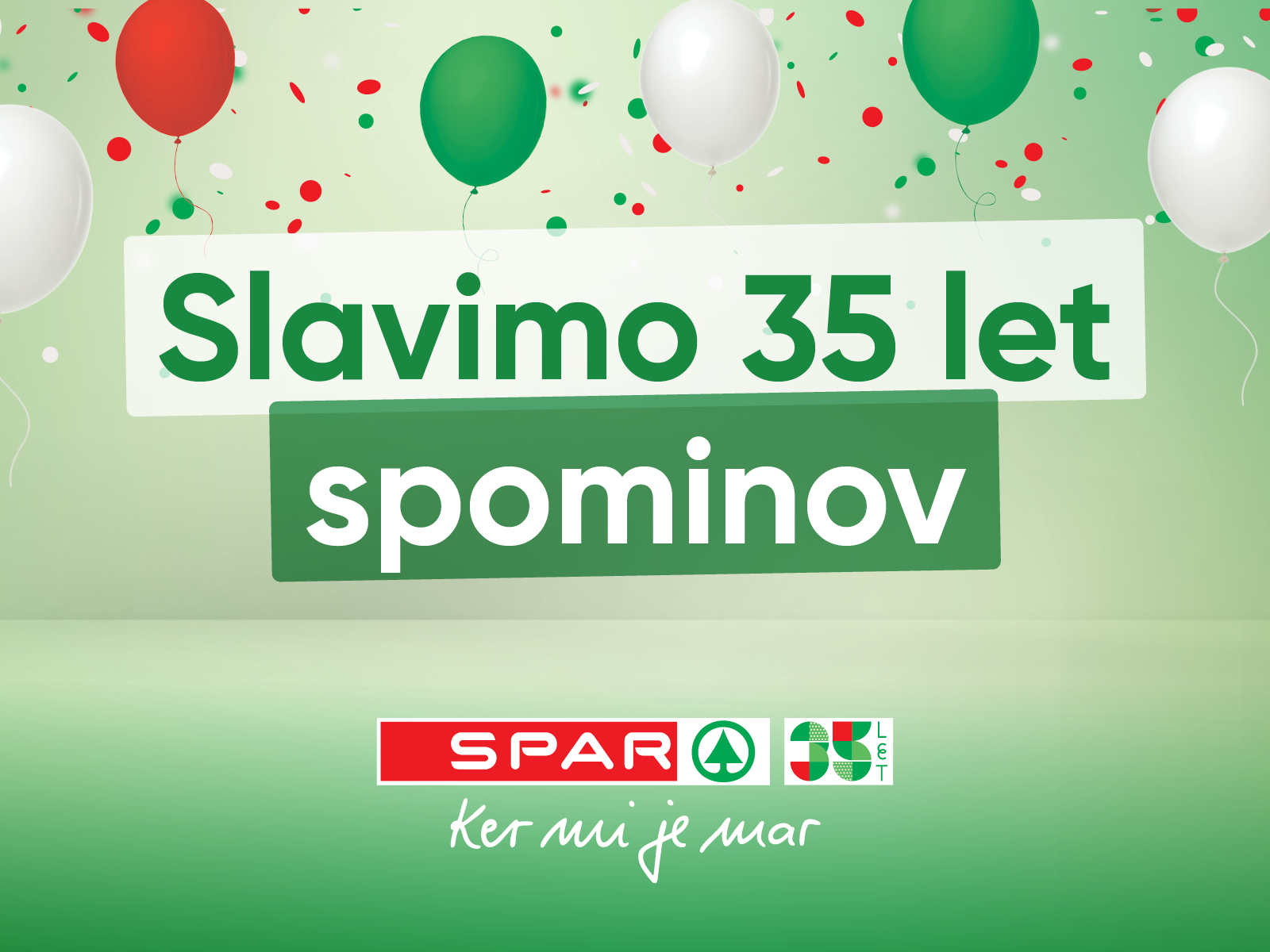 SPAR pa ob svoji 35-letnici nagradno igro simbolično povezuje s sporočilom KER MI JE MAR. Mar jim je za kupce, ki jih spremljajo že desetletja. Mar pa je tudi nam, kje vsakodnevno opravljamo svoje nakupe.