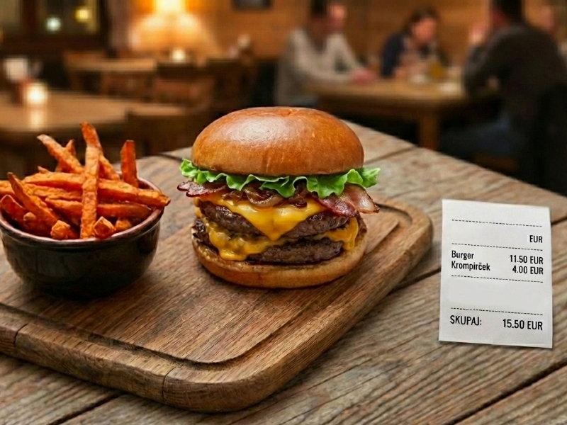 Tipičen burger meni – burger s sirom in krompirček za prilogo – je lahko cenovno bistveno bolj dostopen, kot bi pričakovali glede na današnje cene. Nam je namreč uspelo: našli smo sestavine, s katerimi lahko ustvarite konkreten obrok, skupen strošek pa nanese le nekaj več kot 2 evra na osebo.