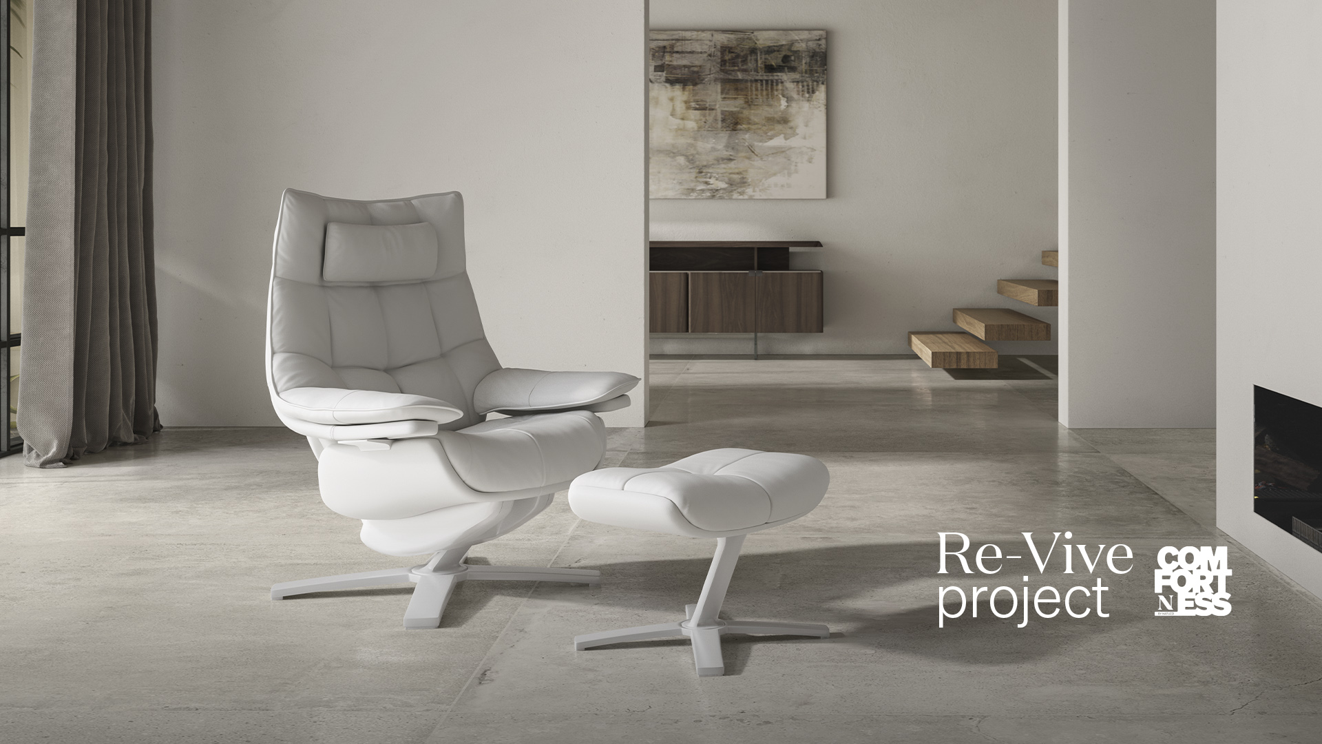 Del pohištvene družine Natuzzi je tudi počivalnik Re-Vive, ki je zasnovan tako, da se intuitivno prilagaja vašemu telesu. Sestavlja ga več kot 120 delov, med katerimi je 80 posebej oblikovanih za izjemno tekoče, odzivno gibanje. Njegov mehanizem omogoča nagibanje, ki sledi vašim premikom in drži, hkrati pa nudi stalno podporo.