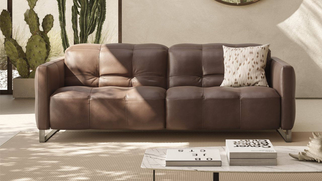 Philo predstavlja elegantno interpretacijo mehkih, organskih linij, ki so v trendu za leti 2025 in 2026. S prepoznavnim prešitjem in kompaktnimi oblikami ustvarja občutek topline, skrito pa vključuje napredne rešitve: dvojni sistem gibanja, električni ali ročni naslon za glavo ter Zero-Wall mehanizem. Rezultat je garnitura, ki združuje estetsko prefinjenost in visoko funkcionalnost.